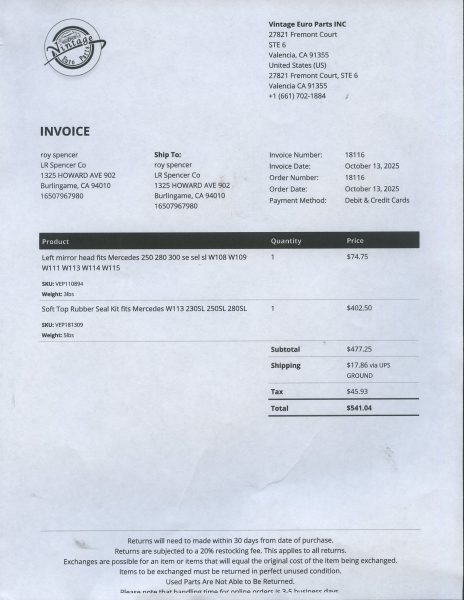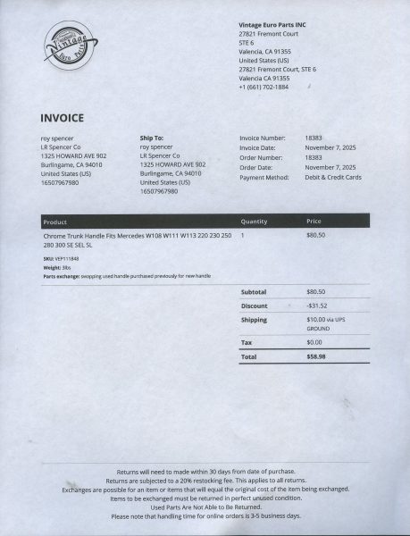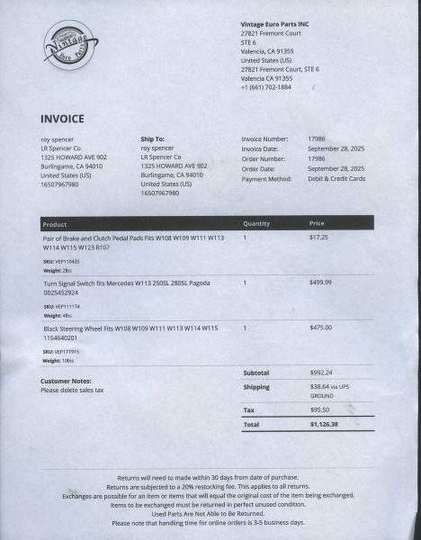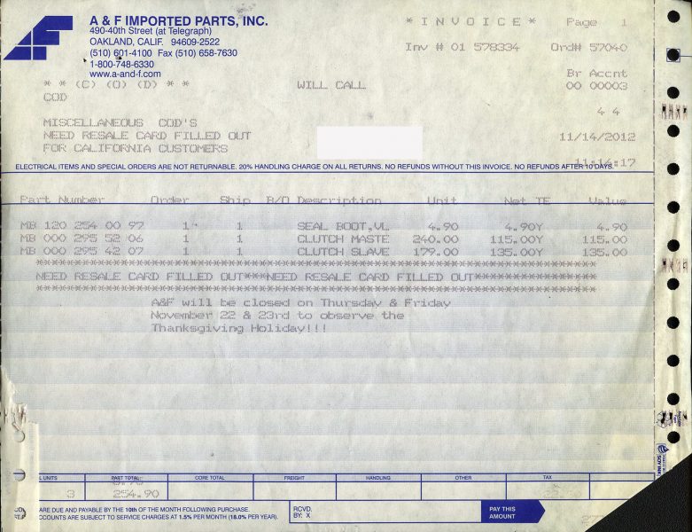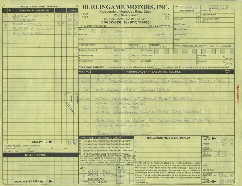 He drove it in the San Francisco Bay area until selling to my client, a professor in Berkeley, CA, in 2004.