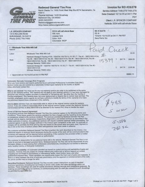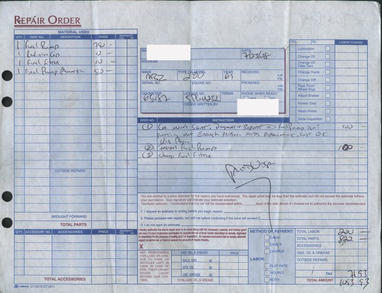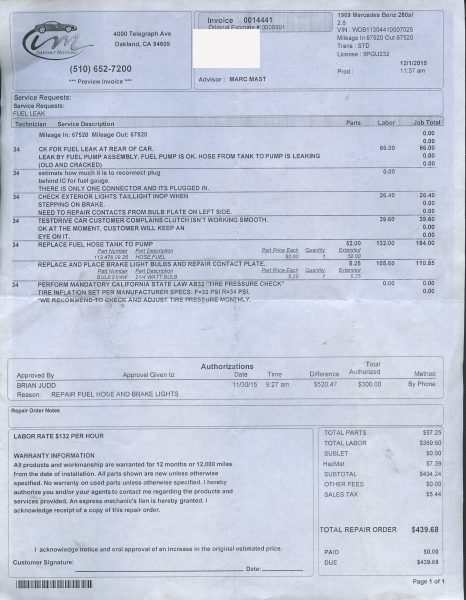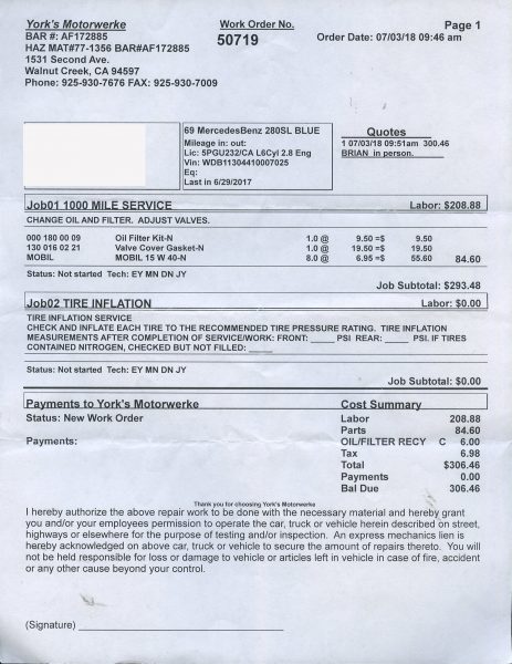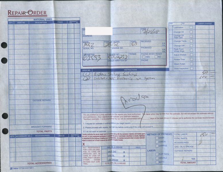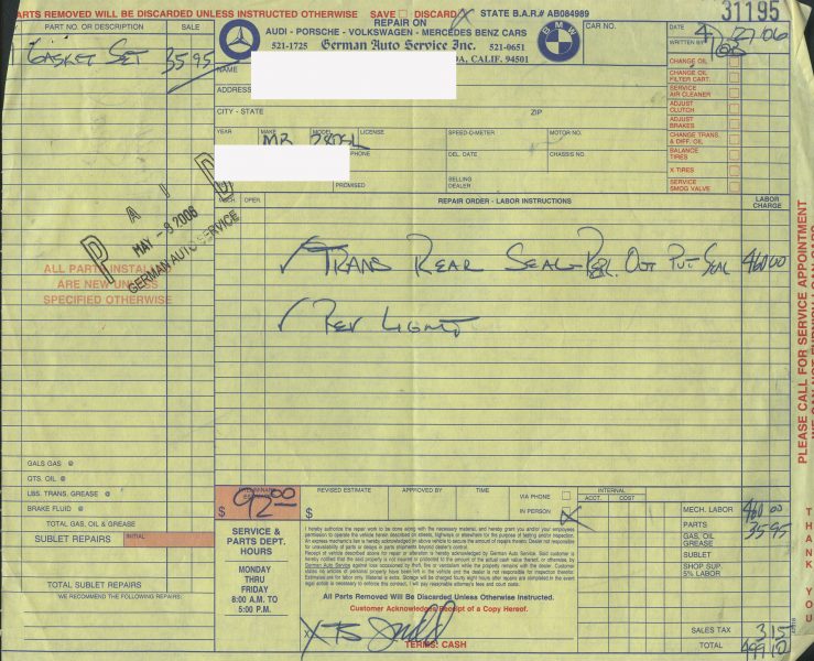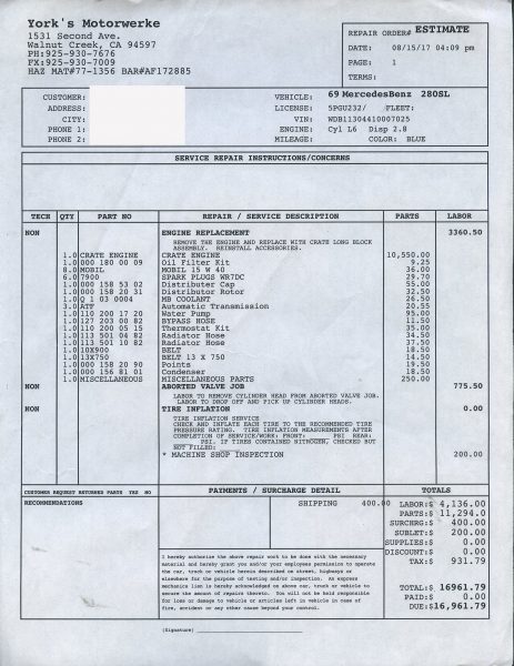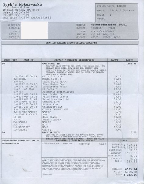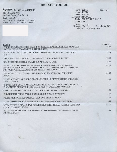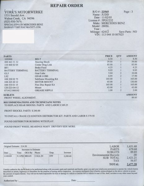 Call for details and/or look at the service orders in the photo essay.