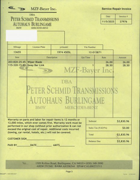 This extraordinary 450SL can be inspected and driven at my gallery in Burlingame, CA - 5 minutes south of SFO.