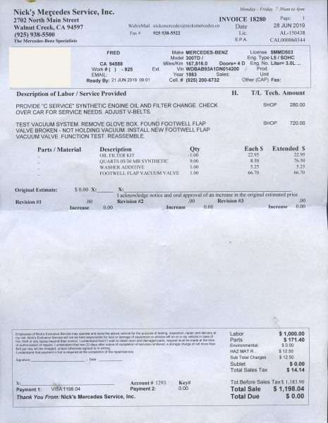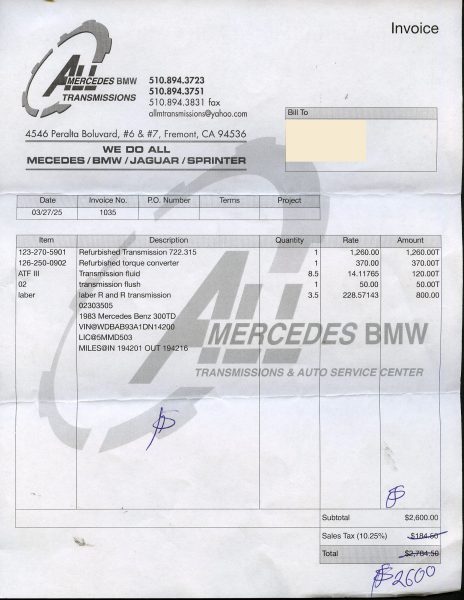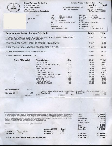 1983 300TD - ID # WDBAB93A1DN014200 - Factor order # 0270563722 - 681 Manila Beige