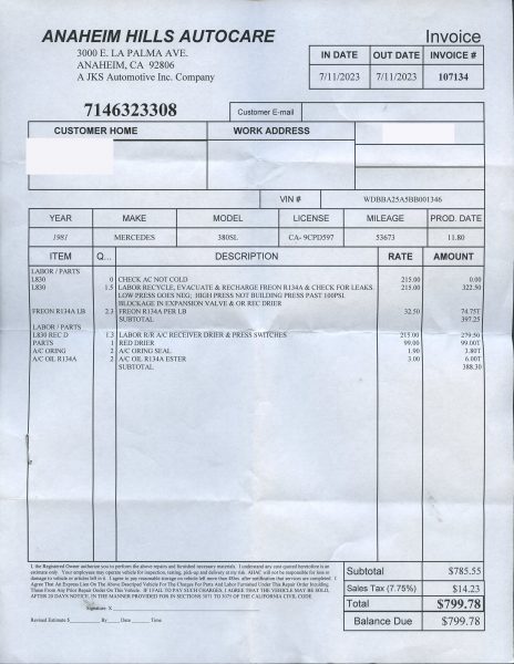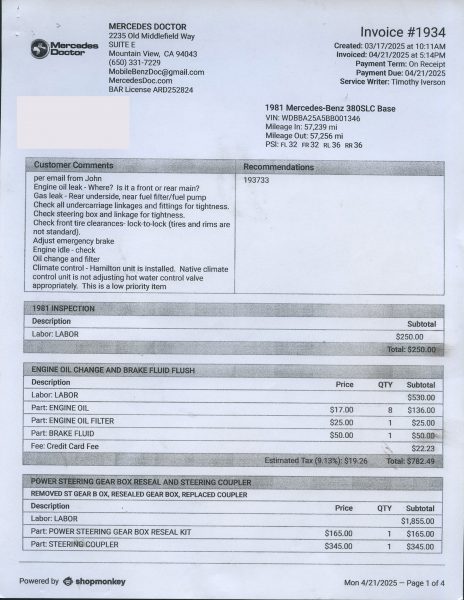 1981 380SLC - ID# WDBBA25A5BB001346 - Engine # 116960 12 003839