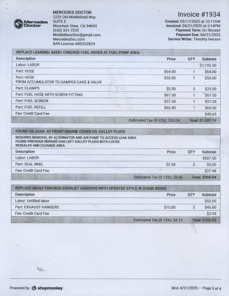 This unique SLC can be inspected and driven at my gallery in Burlingame, CA - 5 minutes south of SFO.