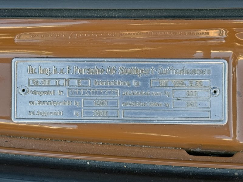 1973.5 Porsche 911T - ID# 9113103421 - Engine #6136076 - 415-9-2 Sepia Brown