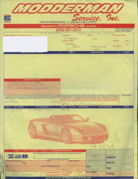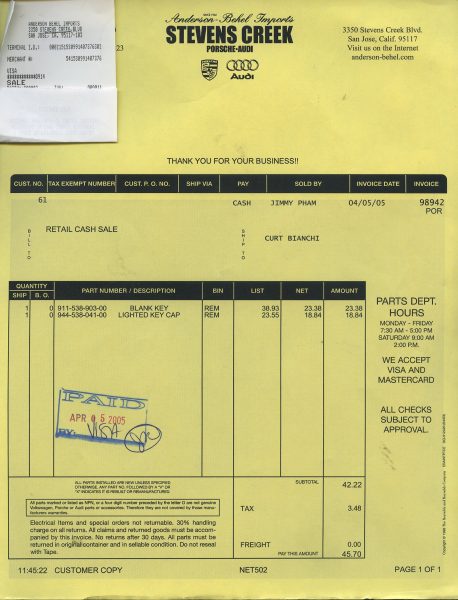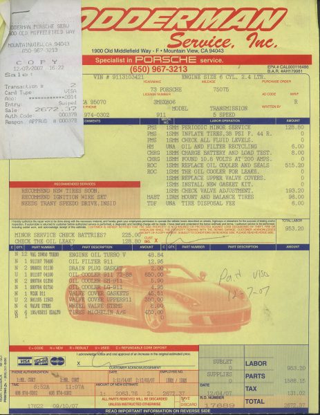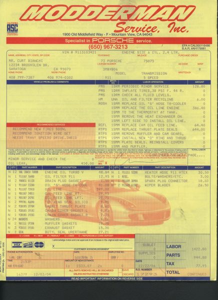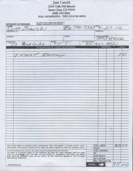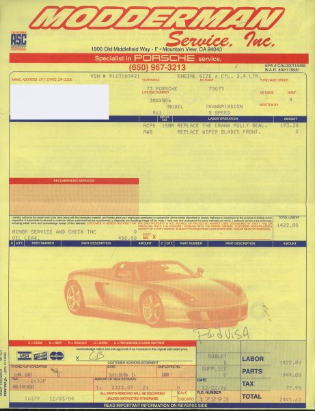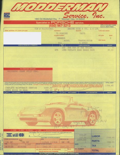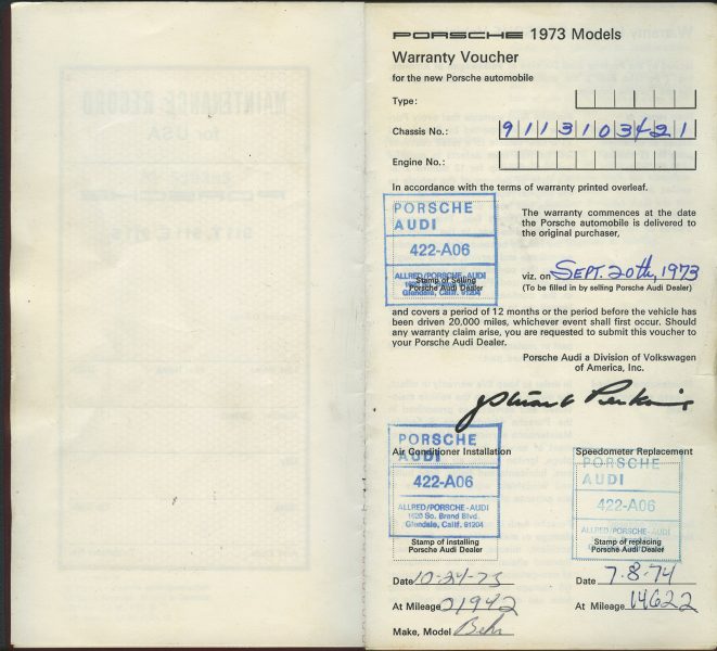 Sold new on -09/20/73 from AllRED Porsche/Audi in Glendale, CA.