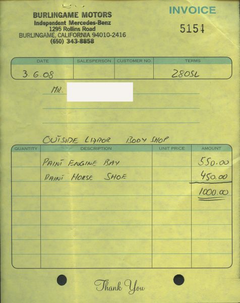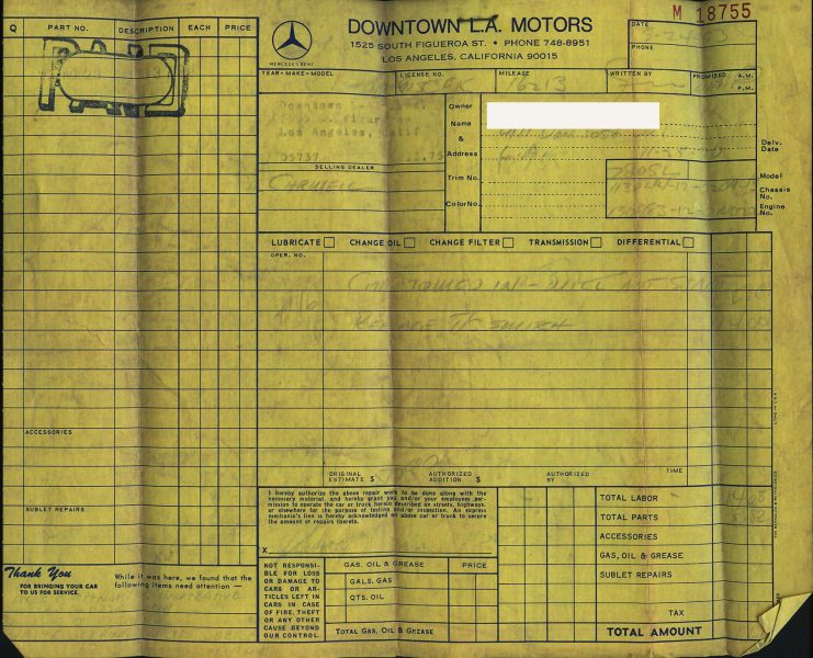 Sold new from Carwell Corporation Mercedes-Benz in Hermosa Beach, CA on 11/25/70