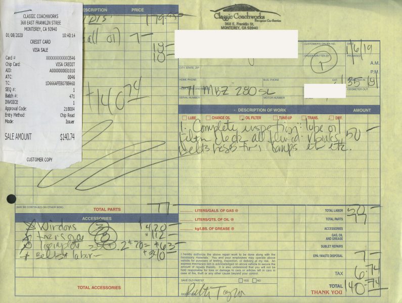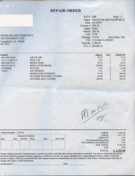 1971 280SL - ID# 113044-12-020943 - Engine # 130983-12-014022 (matches)